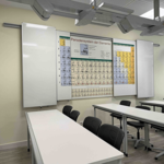 Innovative Schwebeschienentafel zur flexiblen Darstellung des Periodensystems.